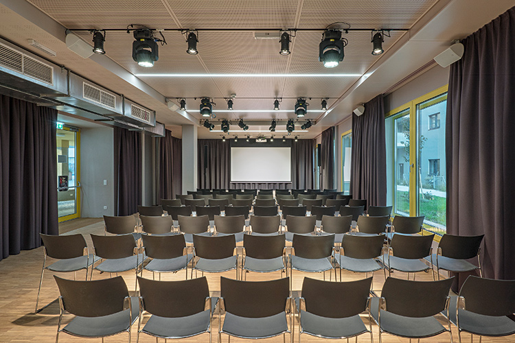 Adaptierbar und nach höchsten Maßstäben ausgestattet: der multifunktionale Saal im Erdgeschoß von GLEIS 21.