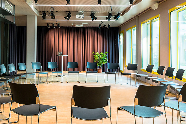 Adaptierbar und nach höchsten Maßstäben ausgestattet: der multifunktionale Saal im Erdgeschoß von GLEIS 21.